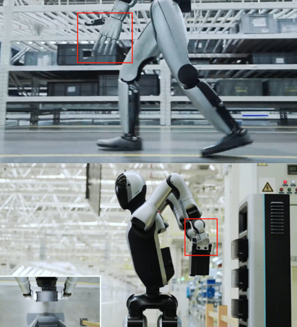 第二个问题的答案是不一定。从目前优必选公布的视频来看,Walker S2在“工作”与“换电”两种状态的切换并不是人们想象的那么丝滑和流畅。如下图,Walker S2在“工作”状态中使用的是“灵巧手”,而在“换电”状态下实用的是“专用手”。如此一来,Walker S2就存在换电之前先换手的操作,而视频中并没有展示换手的具体流程,自然无法确认Walker S2是否能在“工作”与“换电”两种状态自如切换。