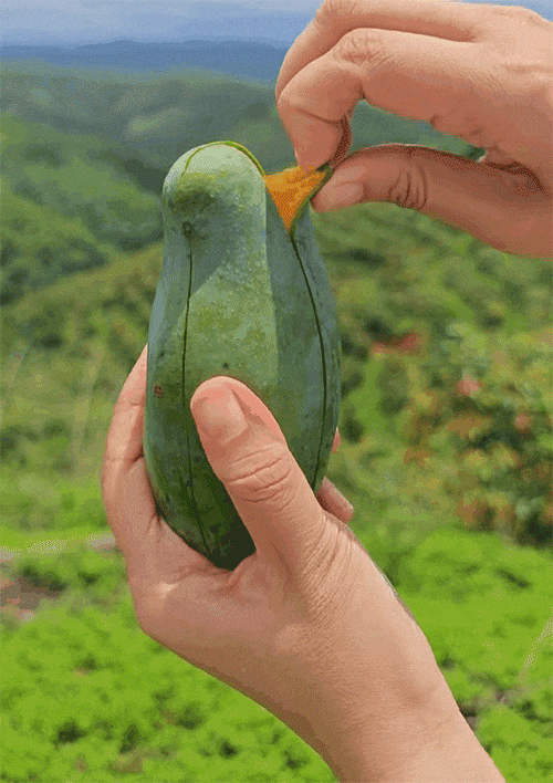 青绿光滑的果皮、金黄细嫩的果肉