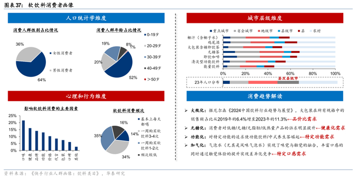 《对话永庆:水和饮料,是两种不同的生意》一文中,将做水和做饮料的第一性原理归结为“从群众中来到群众中去”,具体来说,产品定位的关键是要解决“什么样的人,因为什么样的需求,在什么样的时间和价格上选择了你的产品而非竞品”。据此,我们认为搞清楚消费者画像是寻找软饮行业大单品的首要任务。