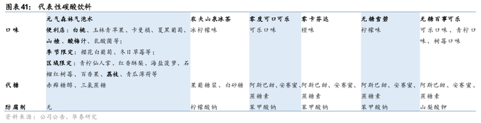 二、加气化下趋势下关注气泡水/碳酸茶等相关赛道,农夫山泉冰茶产品竞争潜力突出。软饮料加气化的底层逻辑在于通过饮料触感的升级延展竞争维度,进而帮助软饮料行业摆脱同质化竞争困局,因此从这一维度看加气的形式具备同任何细分类目饮料结合的可能性(如农夫山泉冰茶实现茶饮加气化、安慕希充气酸奶实现乳制品加气化等),且均存在重塑原始细分类目饮料,成就大单品的可能性。国内气泡水始于1980年高端气泡水进入中国,兴于2018年前后风味气泡水引燃大众市场。若从当前存量品类产品力、市场接受度等角度衡量,我们认为气泡水赛道具备孕育百亿大单品的潜力。