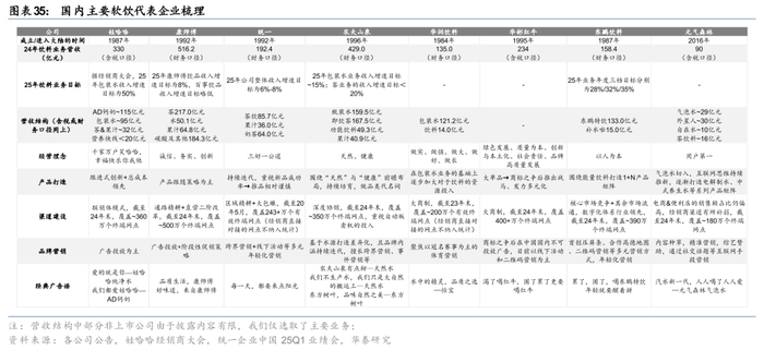 从消费者画像出发,我们总结出两条软饮料行业产品端的方法论:1)沿消费新趋势寻找景气细分赛道:赛道的空间决定单品体量的上限,存在真需求、具备真景气度和成长空间的细分赛道是孕育百亿大单品的基础,而消费新趋势的出现通常会引领新的消费偏好,进而带来新景气赛道成长良机,因此把握消费新趋势是挖掘新细分景气赛道的重要抓手;2)在景气赛道中进一步寻找产品力突出、综合实力有支撑的单品:唯有兼具差异化创新与规模化落地能力的企业,方能将赛道红利转化为可持续的商业价值,最终实现从“趋势跟随者”到“趋势引领者”的跨越。