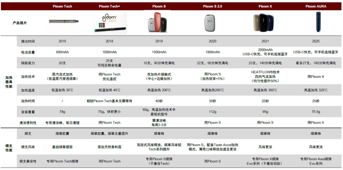 图表7:日本烟草加热不燃烧Ploom产品迭代历程