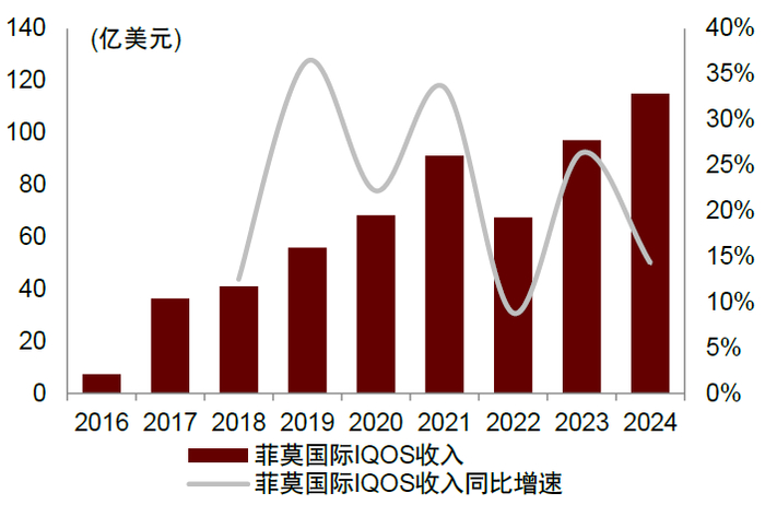 图表5:菲莫国际加热不燃烧IQOS收入及同比