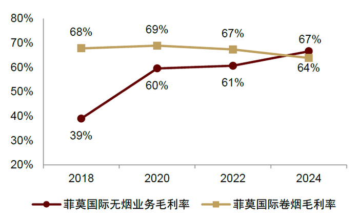 图表3:2024年菲莫国际无烟业务毛利率高于卷烟