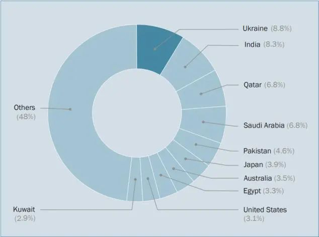 图16:十大武器进口国的全球份额(2020-2024)