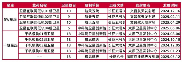 表6:千帆星座和GW星座发射记录