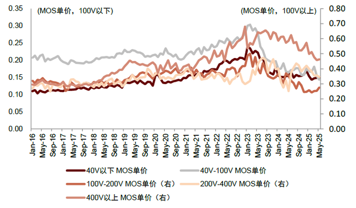 展望2H25:上半年来看,整体功率器件行业需求转好,库存消化,但整体在供给侧充沛,下游需求温和复苏的环境下,行业层面依然呈现结构性改善趋势。低压小电流产品市场复苏节奏较早,目前已进入平缓发展期,而高压大电流产品来看,依然处在价格磨底阶段。我们认为随着行业政策的变化及产品升级,光伏、汽车等功率器件重点应用领域下半年需求有望持续改善,为功率器件市场带来坚实的中长期成长动能。结构性上来看,我们认为国内功率MOS/IGBT出海对海外产品替代,SiC器件国产上车是投资者需要关注的重点,可能为相关企业带来较强的业绩alpha。此外,GaN产品在工业领域(新能源车、数据中心、机器人)的全面渗透也有望成为行业新的增长点。