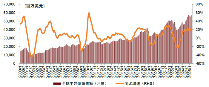 周期角度:全球半导体增长明确。WSTS最新预测2025/2026年市场规模或将达7,009/7,607亿美元,同比增长11%/9%,集成电路领域受益于逻辑电路与存储器增长,增速分别达13%/9%。存储器供需趋紧尤为突出,DRAM因原厂停产中低阶产品及消费旺季来临,我们预计3Q25价格环比上涨10%-15%;NAND Flash受AI服务器需求拉动,3Q25价格或环比上涨5%-10%。同时,我们预计晶圆代工与封测产能利用率维持高位,车规级芯片需求旺盛,工业级芯片产品需求出现改善。