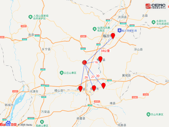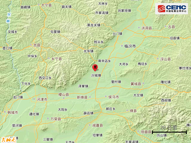 附近村镇:本次地震周边5公里内的村庄有程公村、南中黄村、西中黄村、李果村、薛庄村、北高一村、西圪塔村、张高村、长子头村、孝村,20公里内的乡镇有蚂蚁同镇、汾城镇、古城镇、西贾乡、南贾镇、景毛乡、南辛店乡、赵康镇、永固乡、新城镇。