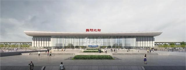 舞阳出土的“贾湖骨笛”震惊中外,被誉为世界音乐文明的奇迹。舞阳北站屋面轮廓便取自贾湖骨笛的形态曲线。站房屋面两侧上翘、整体舒展,勾勒出文物的标志形象,兼具传统建筑典雅大气的风韵,气势庄重典雅。站房立面造型采用现代设计语言,表现传统文化之韵味,勾勒出舞阳门户的雄浑气势,演绎古朴悠远的历史底蕴。站房下部采用对称渐变的混凝土饰面板,兼顾美观遮阳,疏密有致,呈现出乐曲的生动韵律。