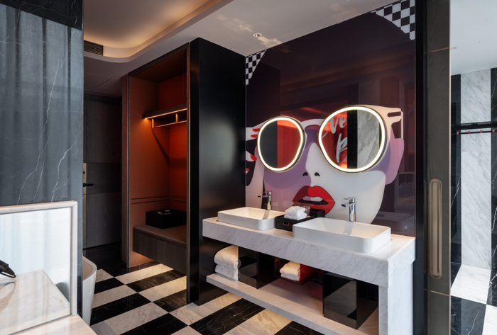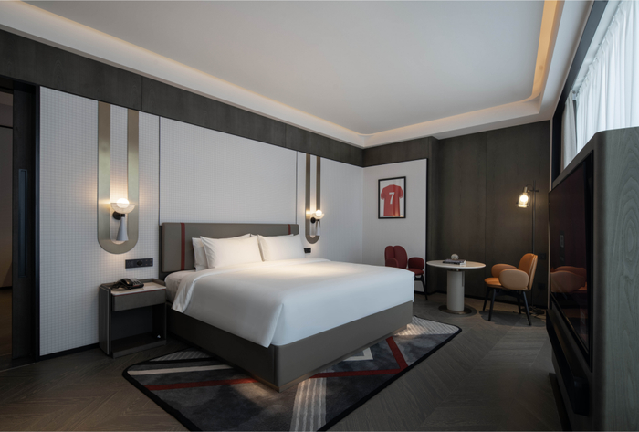 值得一提的是,西安奥体中心丽芮酒店133间客房中居然设计出了8个主题套房,来满足多元客群需求,让客人“住起来很享受”。迈点实地体验认为,从芮享STUDIO、红调生活套房、红魔足球套房到SUNDAY HOME米奇家族套房,不同人可以找到自己心仪的房型,甚至可以随机“拆盲盒”式入住——这就是差异化IP带来的惊喜感。