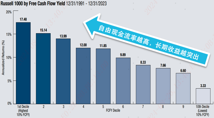 尽管优质价值股“不内卷”,不会时刻保持企业的扩张,但不代表“不能卷”。优质价值公司一般已经有较稳定的业务基本盘,尽管平时盈利增速可能只能算中庸,但因为有强大的现金流支撑,能够在属于他们的风口展现扩张能力;或是在市场面临扩张压力时展现稳定的基本盘。海外成熟市场的经验已经验证,高自由现金流比率的公司随着时间的推移往往产生更好的收益。