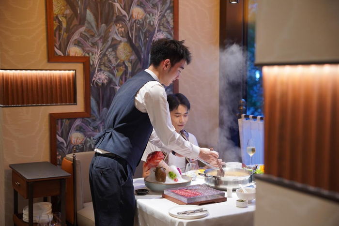 据了解,海底捞臻选店服务人员均经过专业礼仪培训,侍茶师由服务过多个米其林餐厅、黑珍珠餐厅的团队担任。据海底捞臻选店的店经理介绍,门店主厨、侍酒师、运营团队等多个工作人员有高端酒店、高端餐饮从业经历,力求为消费者提供更加精致的用餐体验。