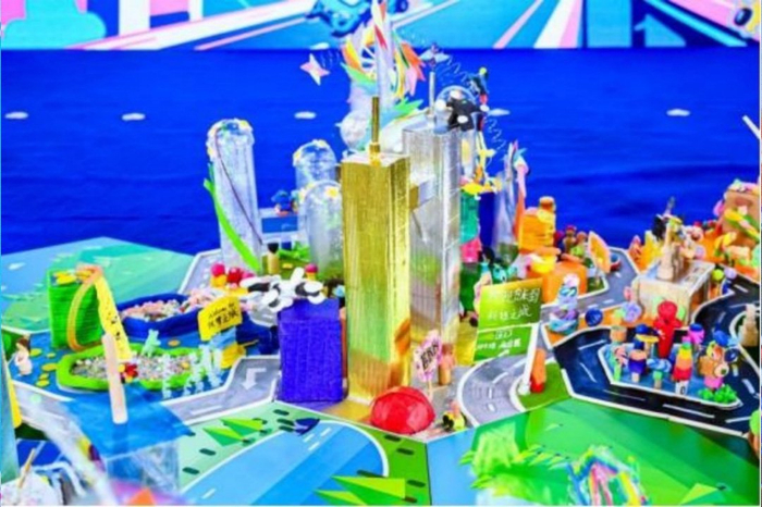 四组作品各具特色:“科技之城”以金属为基底,展现智能建筑、科技公园与智能家居,凸显科技对安全的全方位守护;“欢乐之城”以糖果色彩为基调,在童趣中巧妙融入安全设计;“织梦之城”以布艺为媒介,通过柔性材料构建温暖社区,安全设施巧妙隐身于公共艺术之中;“智慧之城”则以植物为元素,融合自然与智能交通、智慧博物馆,实现低碳与安全的平衡。