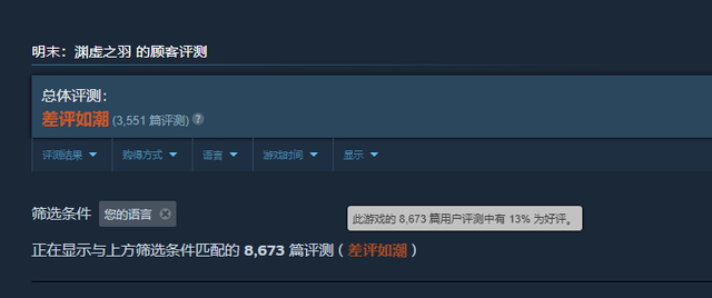明末的好评率一度将跌破10%