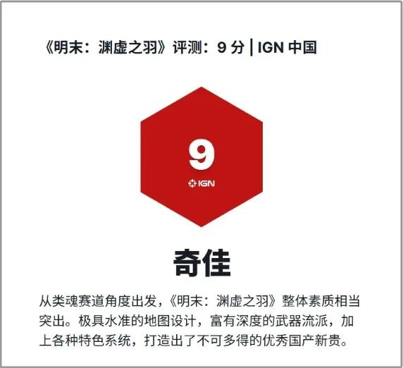 另外,IGN本家给出与《黑神话:悟空》一致的8分评价,认为其 “为类魂游戏阵营再添佳作”,而IGN中国则给出了9分的高分评价(此前黑神话得分10分),认为其“从类魂赛道角度出发,《明末》整体素质相当突出。”