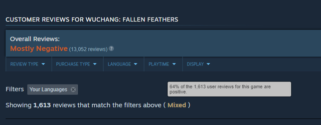 受此影响以及补丁的推送,《明末》发售24小时后,口碑正在逐步回升。目前Steam上《明末》评测已经达到3万多条,好评率也升至26%,其中国区部分也升到21%。一切都在往好的方向发展。