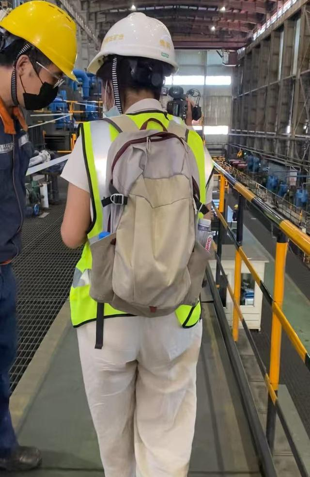7月25日,当地组织媒体在厂区采访时,工作人员向记者发放临时工牌时提到,人少不用戴耳机,“我们一般都是说五六十人、一百人以上我们才要戴耳机,有个专门的讲解员”。