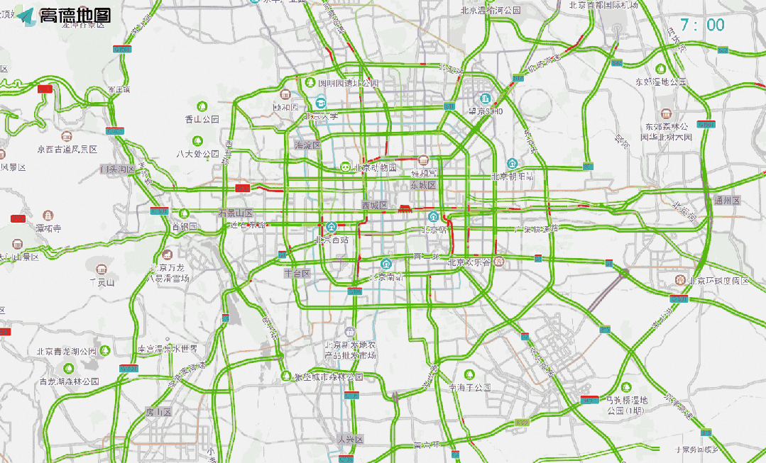景区景点方面,近期八达岭、环球度假区、野生动物园、雍和宫、颐和园、圆明园、北京动物园、古北水镇以及部分高等学府热度较高;北海、故宫、景山—后海—南锣鼓巷区域等北京中轴线贯穿的多个地标景点周边道路车流量大。
