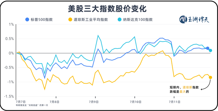 今年,出现了一个较为明显的不同。7月,美国发送多轮“关税信函”以来,道琼斯指数成了跌幅最大的股指。