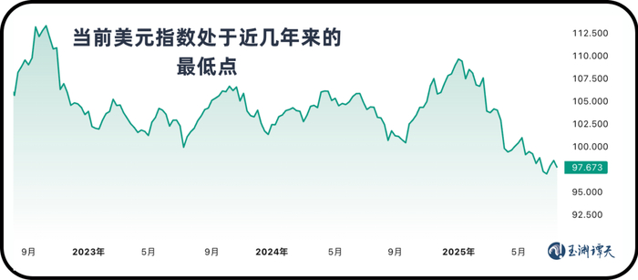 今年以来,美元指数确实不断走弱,已经跌至近年来的低点。而支撑其强势地位的财政、科技、股市这三个元素,也开始显露疲态。
