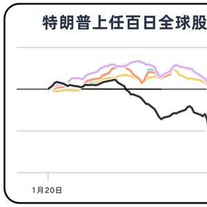这是美国总统特朗普上任百日的全球股市波动情况。原本保持涨幅的美国股市,却在一次又一次的关税威胁中不断下跌。