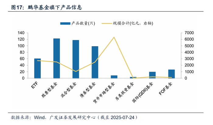 根据wind,截至2025年7月24日,鹏华基金的公募资产管理规模9441亿元,管理公募基金共361只,产品涵盖股票型、混合型、债券型、货币型、指数型、QDII型、FOF型等。
