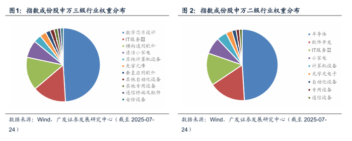 指数“AI含量”高,数字芯片设计数量及权重领先。根据Wind,截至7月25日,数字芯片设计公司权重达到49.03%,IT服务和横向通用软件权重占比约30%。