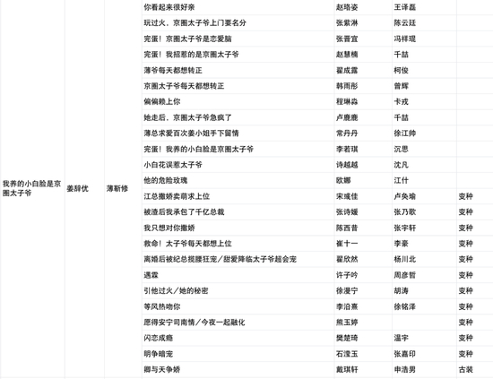 翻拍版本统计 / 豆瓣“爱短剧组”