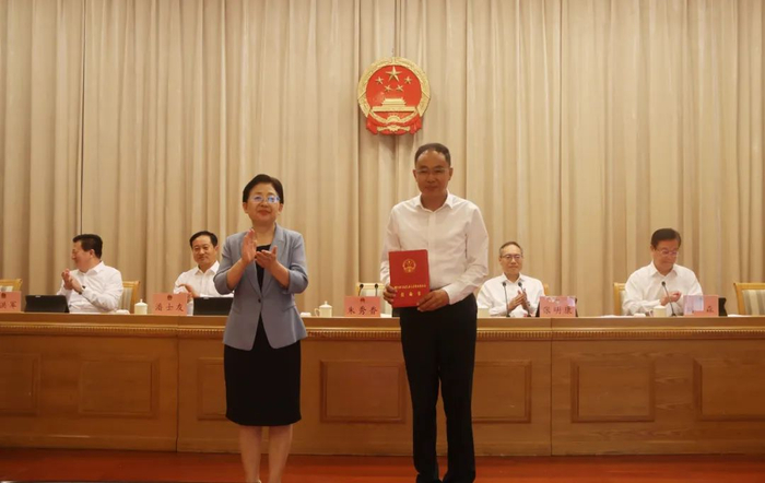 朱秀香向新任命人员颁发任命书。会议举行宪法宣誓仪式。