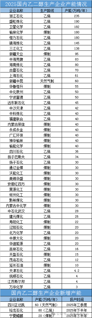 近五年来中国乙二醇产能保持高速增长,特别在2020-2023年国内产能在新增装置集中投放后出现跃升,导致行业供过于求,自2024年后起乙二醇产能增速出现明显放缓,2025年仅有四川正达凯、裕龙石化、宁夏鲲鹏160万吨新增产能。作为对比,近五年下游聚酯行业产能增速较高,这将推动乙二醇市场逐步走向供需平衡,价格有望逐步稳定。化塑汇通过数字化平台和创新服务,为客户提供全面的供应链优化、交易管理、市场分析发展支持,助力企业提升市场竞争力,实现可持续发展。