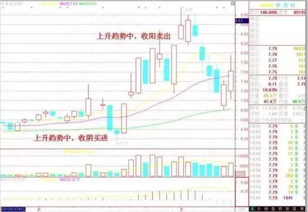 这一口诀与第一诀有点类似,就是讲逆市而动的道理,第一诀是说短线的,第二诀是说中线的。即,买时,选则K线收阴线时买;卖时,选则K线收阳线时卖。