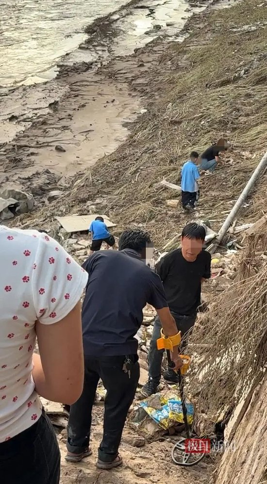 随后,“洪水将金店黄金冲走”的消息在吴起县传开,不少居民来到金店附近试图寻找黄金。网传多段视频显示,该店铺门前以及河道附近,不少居民低头在水里找黄金,有的甚至拿着金属探测仪器。