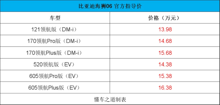 动力方面,海狮06 DM-i/EV分别采用第五代DM技术和e平台3.0 Evo打造,纯电车型提供后驱和四驱车型,后驱版将提供170千瓦和180千瓦功率电机,四驱版最大功率为110千瓦(前)、180千瓦(后)。车辆将配备65.28kWh和78.72kWh电池组,续航里程分别为520km、550km和605km。