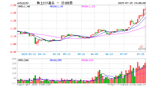 7月25日稀土ETF嘉实(516150)份额增加8600.00万份,最新份额26.31亿份,最新规模37.99亿元