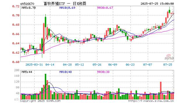 7月25日畜牧养殖ETF(516670)份额增加1400.00万份,最新份额10.93亿份,最新规模7.68亿元