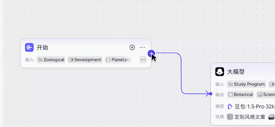 打开网页画布,拖拖拽拽,像搭积木一样拼出智能体的工作流程。