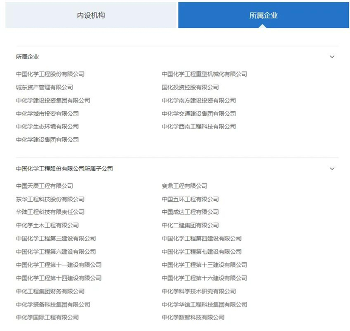 中国化学所属企业组织架构图