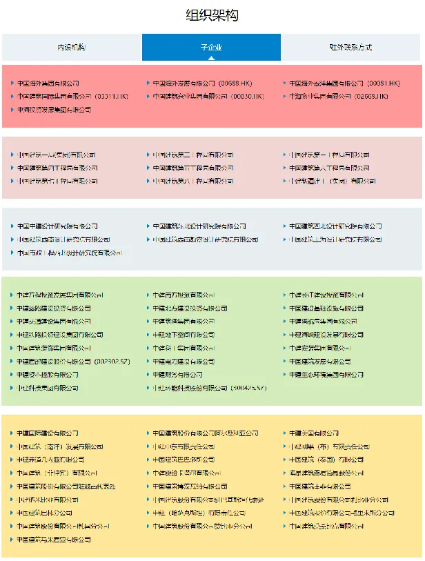 中国建筑子企业组织架构图