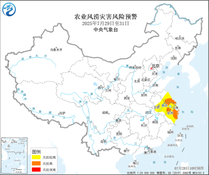 农业农村部和中国气象局2025年7月28日联合发布台风和洪涝灾害风险预警: