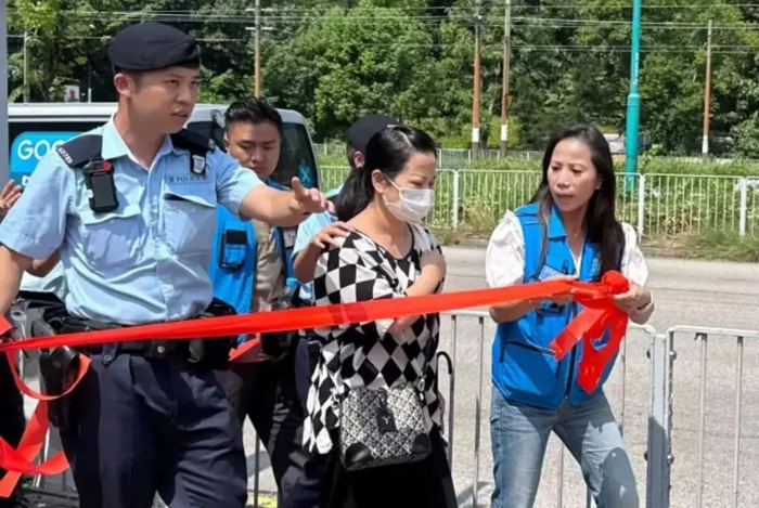 值得一提的是,在7月25日的庭审散庭后,热情似火的旁听人士久久不散,还在庭外举机疑似直播何伯夫妇,最后被保安劝喻。还有大量旁听市民也在等候何伯夫妇离开,多人高声叫嚣。当何伯何太步出法院时引来多名市民围观拍照,需多名警员拉起橙带,护送两人离开,其中何太更是获警方拉起“橙带”分隔群众护送离开,这排面也真是“顶流”待遇了!
