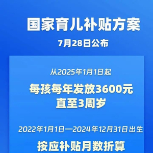 每孩每年3600元!《育儿补贴制度实施方案》发布