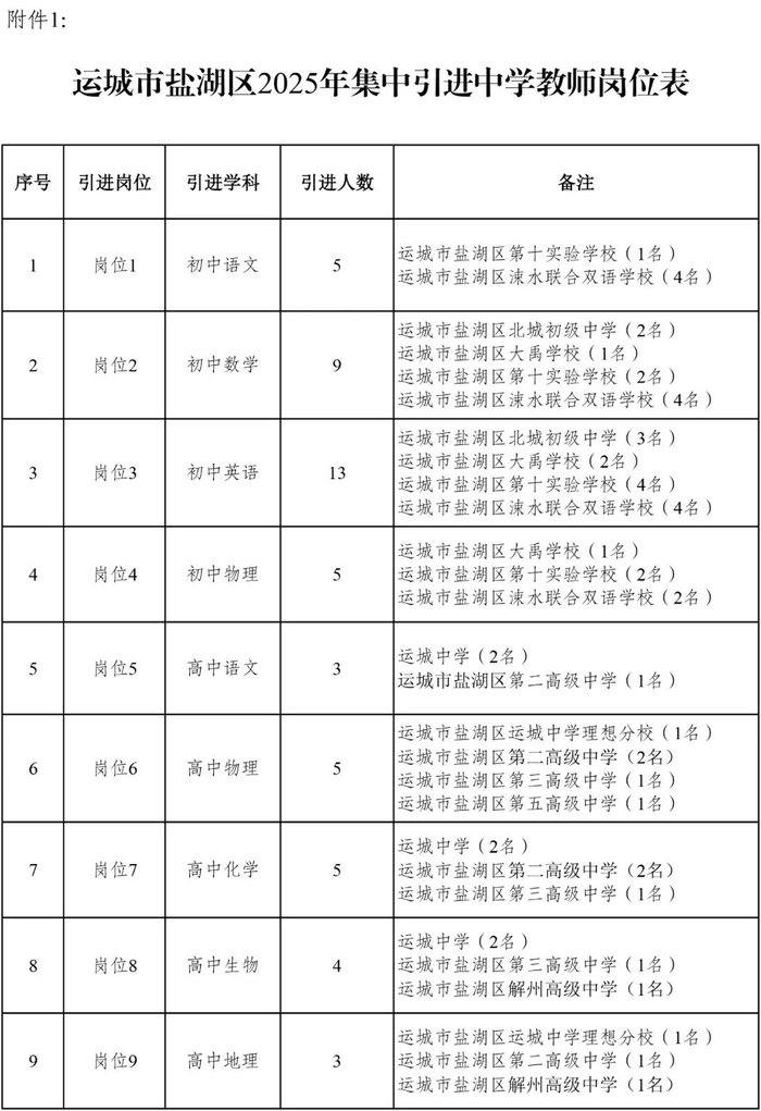 为进一步加强全区教师队伍建设,推进盐湖教育事业高质量发展,根据工作需要,决定面向盐湖区外集中引进中学教师,现将有关事项公告如下。