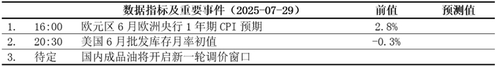 油价上涨,此前美国和欧盟达成贸易协议,且美国总统特朗普表示,他正在缩减此前用以给俄罗斯与乌克兰达成协议所设定的50天期限。中国原油加工同比增速大幅反弹,加工量上升至历史新高,国内原油需求大幅提振,支撑油价。供应端,OPEC+方面 8个产油国在4月至8月的产量将累计增加191.9万桶/日,增产政策强于预期,但是实际产量增幅弱于预期;最新公布的6月份OPEC+产量环比小幅上涨33万桶/日,增幅不及预期,说明增产的进展受挫,增产进度仍需观察。需求端,美国进入驾驶旺季,原油需求有望得到季节性提升;6月份国内原油加工需求环比大幅增长,随着出行消费带动,原油需求有望进一步提振。操作上建议:多单持有。(黄秀仕,从业资格号:F03106904,交易咨询号:Z0018307)