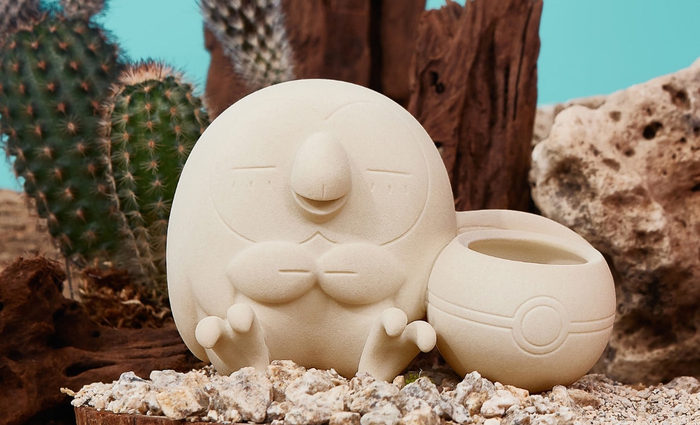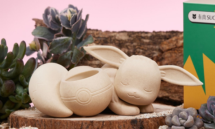 而放置植物的地方,自然就是圆形的宝可梦球。整个花盆系列的颜色以低饱和的燕麦色为主,带有磨砂质感的陶土外观能够帮助其融入到家居环境里。更有意思的是,正是这样的配色,才使得植物本身的色彩得到突出呈现。