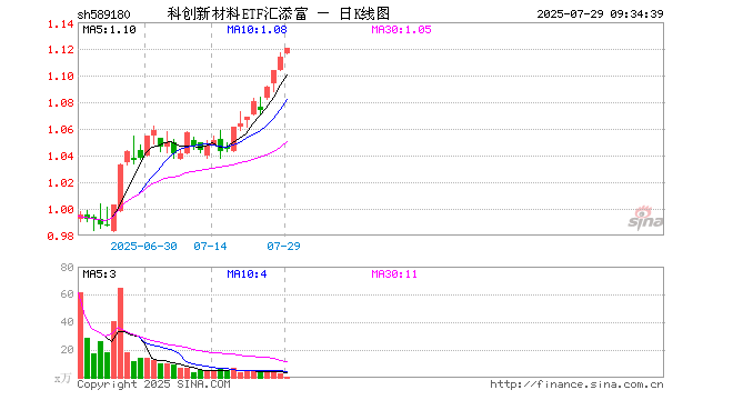 科创新材料ETF汇添富(589180)业绩比较基准为上证科创板新材料指数收益率,管理人为汇添富基金管理股份有限公司,基金经理为罗昊,成立(2025-06-05)以来回报为11.79%,近一个月回报为7.35%。