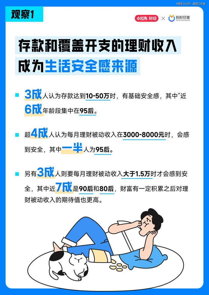 为了求稳定而开始多元理财,小丁是当下许多青年人的缩影。最近,蚂蚁财富和小红书财经联合发布《避险青年调研报告》,结论显示,年轻人比想象中“求稳”,对“安全感”也有他们自己的定义:相比铁饭碗,他们更在意存款数字与理财被动收入。近六成95后认为10-50万存款是“基础安全感”门槛,57%的人将“被动收入覆盖开支”视为稳定的核心条件。