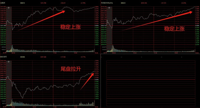 算力:算力硬件在经历连续两日的炒作后,PCB与CPO板块中多数个股都获得了资金的大举流入。因此算力硬件若想进一步延续强势的话,可能会向细分扩散。
