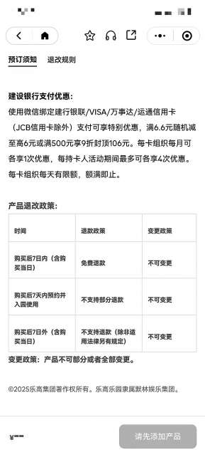 图一:上海乐高乐园年卡退改政策。