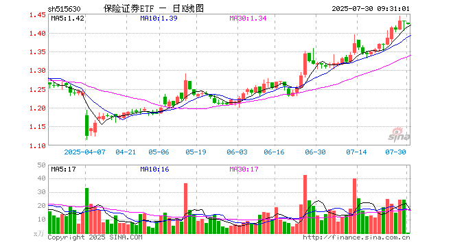 保险证券ETF(515630)业绩比较基准为中证800证券保险指数收益率,管理人为鹏华基金管理有限公司,基金经理为余展昌,成立(2020-02-28)以来回报为42.82%,近一个月回报为8.29%。